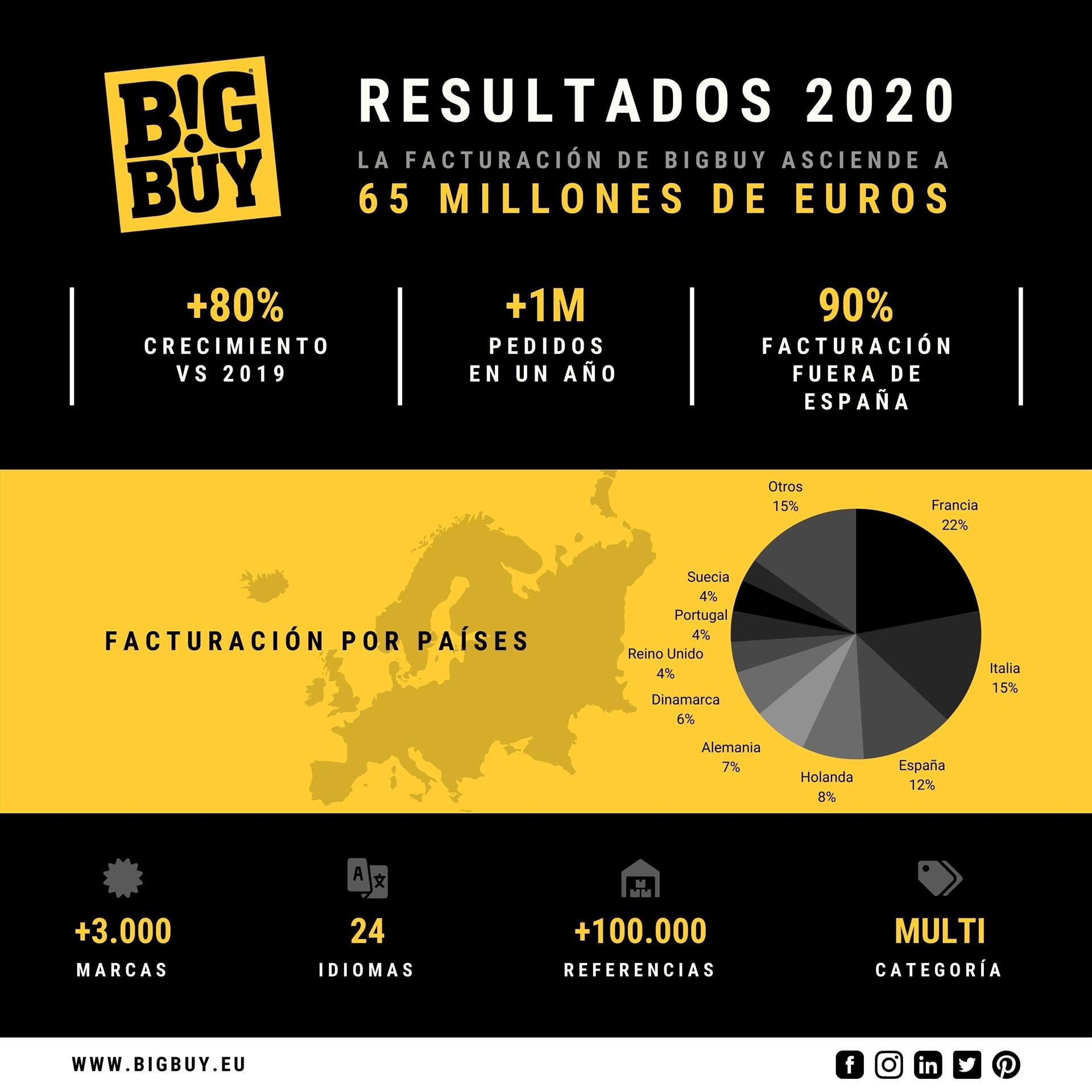 Se trata de un salto importante que supone un crecimiento del 80% respecto al año anterior, si se tiene en cuenta que en 2019 BigBuy facturó 36 millones de euros.