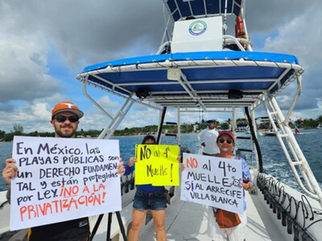 En una acción contundente por la defensa del patrimonio natural de México, buzos, prestadores de servicios turísticos, habitantes de Cozumel y activistas ambientales realizaron hoy una manifestación pacífica en lancha frente al arrecife Villa Blanca. Más de 300 personas, a bordo de 40 embarcaciones, formaron parte de esta movilización, respaldada por más de 150,000 firmas en Change.org (Change.org/NoNecesitamosUnTerminalDeCruceros), que busca frenar la construcción del cuarto muelle y la extensión del muelle internacional de cruceros en la isla.
