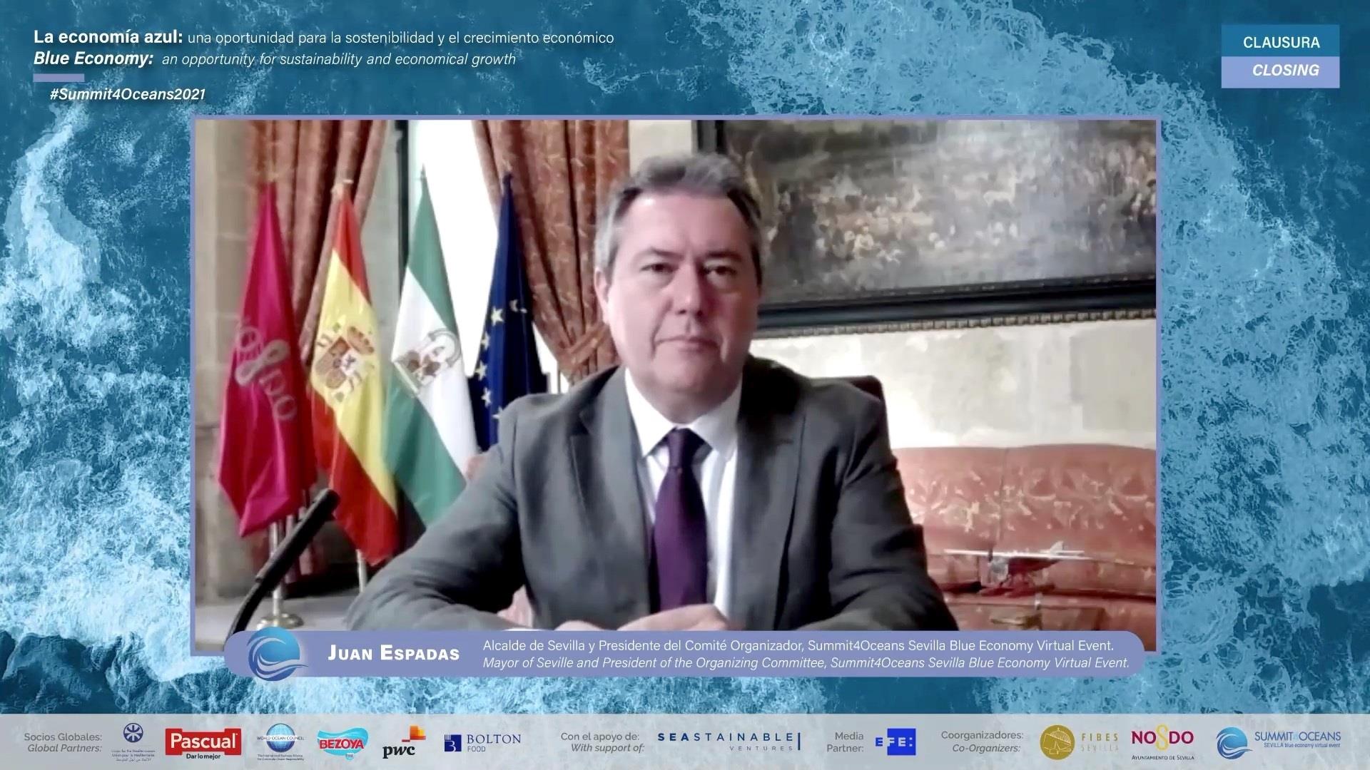 En la clausura del foro virtual Summit4Oceans Sevilla, el alcalde de la ciudad hispalense y presidente del Comité Organizador, Juan Espadas, ha insistido este miércoles en reforzar la petición de los participantes de tratar a los océanos como la principal herramienta para frenar el impacto del cambio climático.
