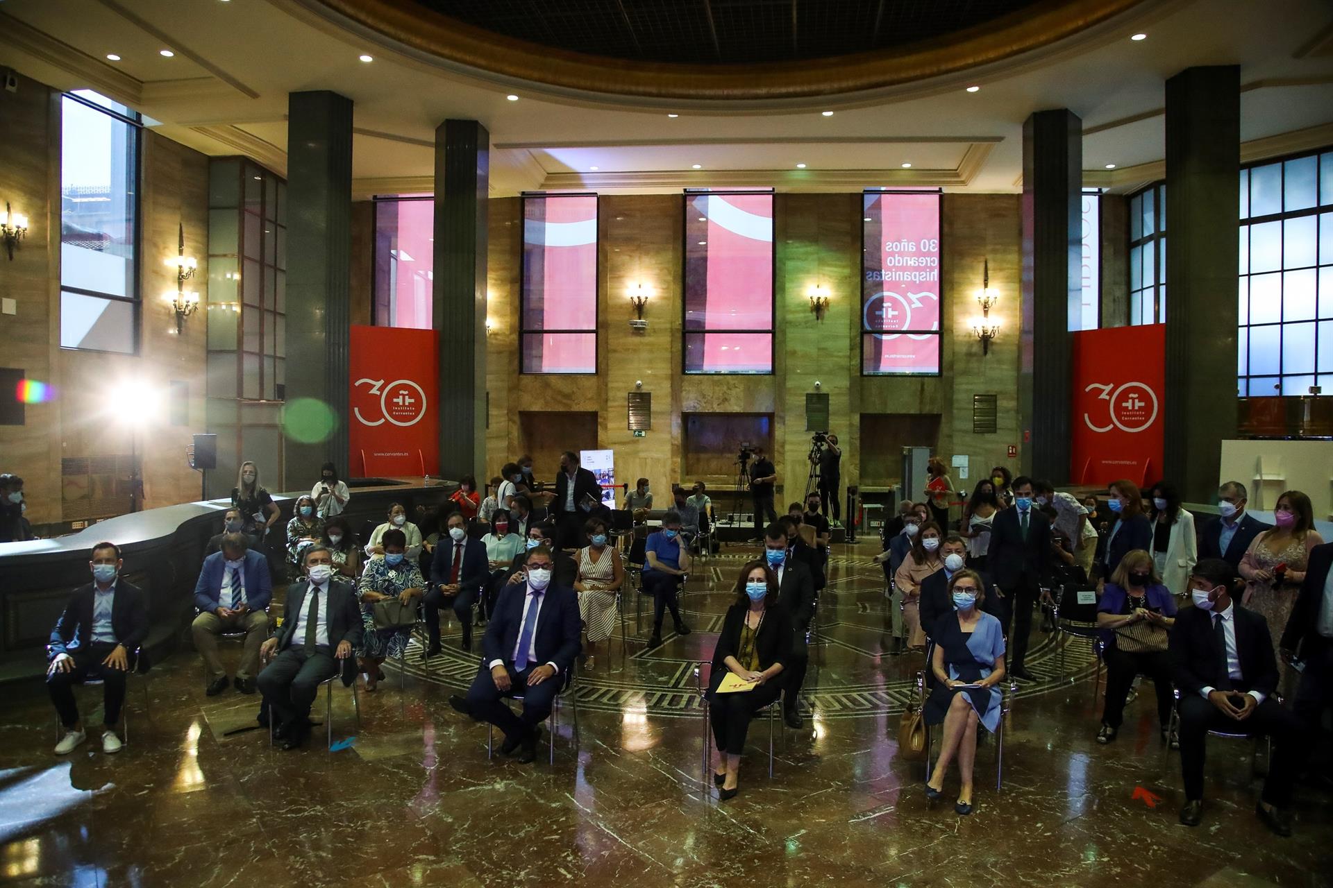 En el evento estuvieron presentes, entre otras personalidades, la directora general de Bellas Artes, María Dolores Jiménez-Blanco; la secretaria general del Instituto Cervantes, Carmen Noguero; el presidente de Paradores, Pedro Saura, en su primer acto público tras tomar el cargo este verano, y el alcalde de San Cristóbal de La Laguna, Luis Yeray Gutiérrez.