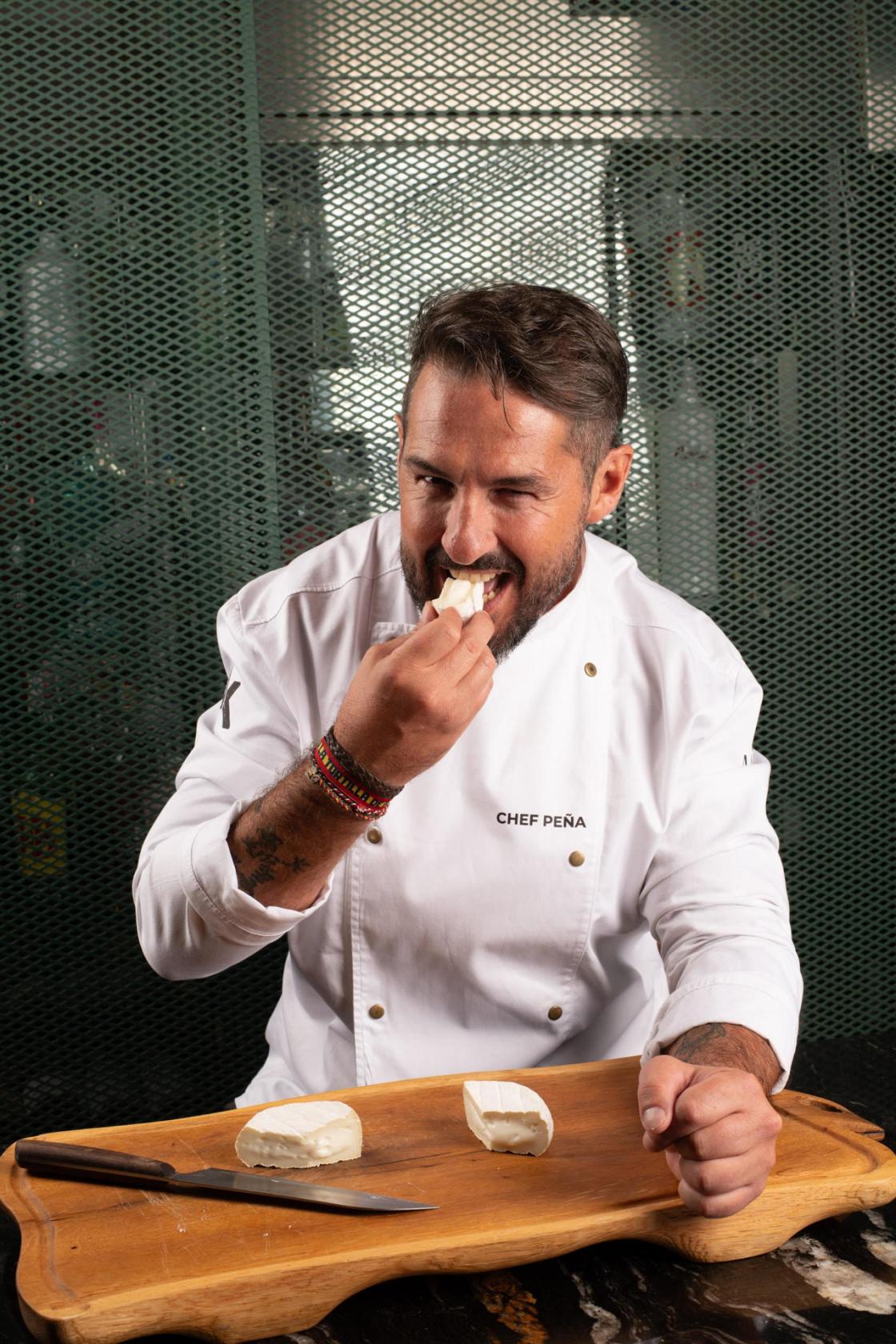 No es habitual que los cocineros salgan de los fogones, pero menos aún, que se adentren en una fábrica y se metan de lleno en la innovación. Es lo que ha hecho Javier Peña, el reconocido chef, que siempre ha declarado un enamorado del queso y que quería retirarse algún día “fabricando queso”.
