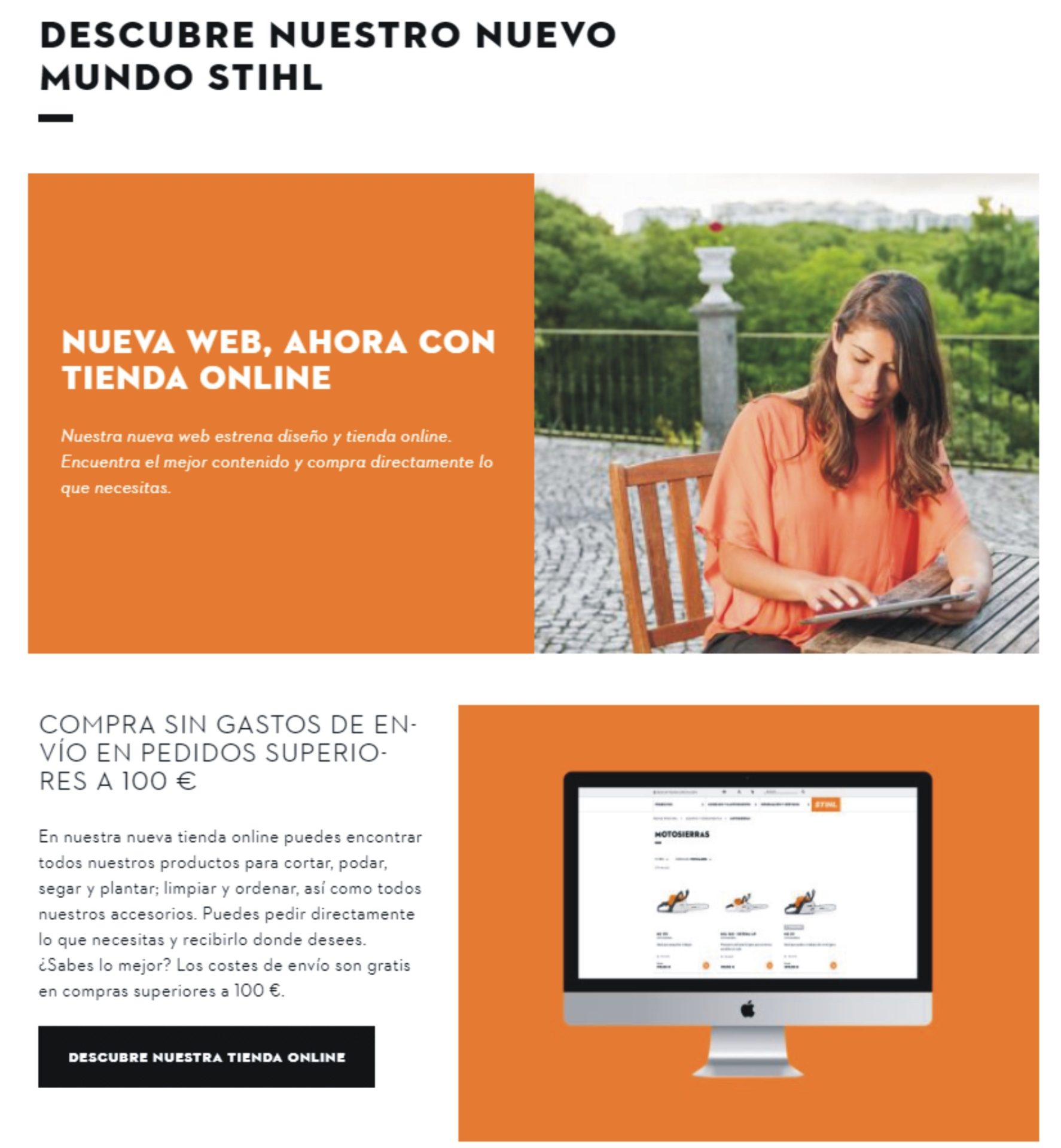 STIHL, líder mundial en maquinaria de jardinería, forestal y agrícola, da un gran paso hacia la digitalización, la omnicanalidad y su adaptación a los nuevos comportamientos de compra. A partir del 1 de julio, los clientes españoles ya pueden realizar sus compras de cualquier producto STIHL a través de la tienda online en la nueva página web de la compañía. España es uno de los cuatro primeros países en todo el mundo que cuenta con este novedoso servicio.