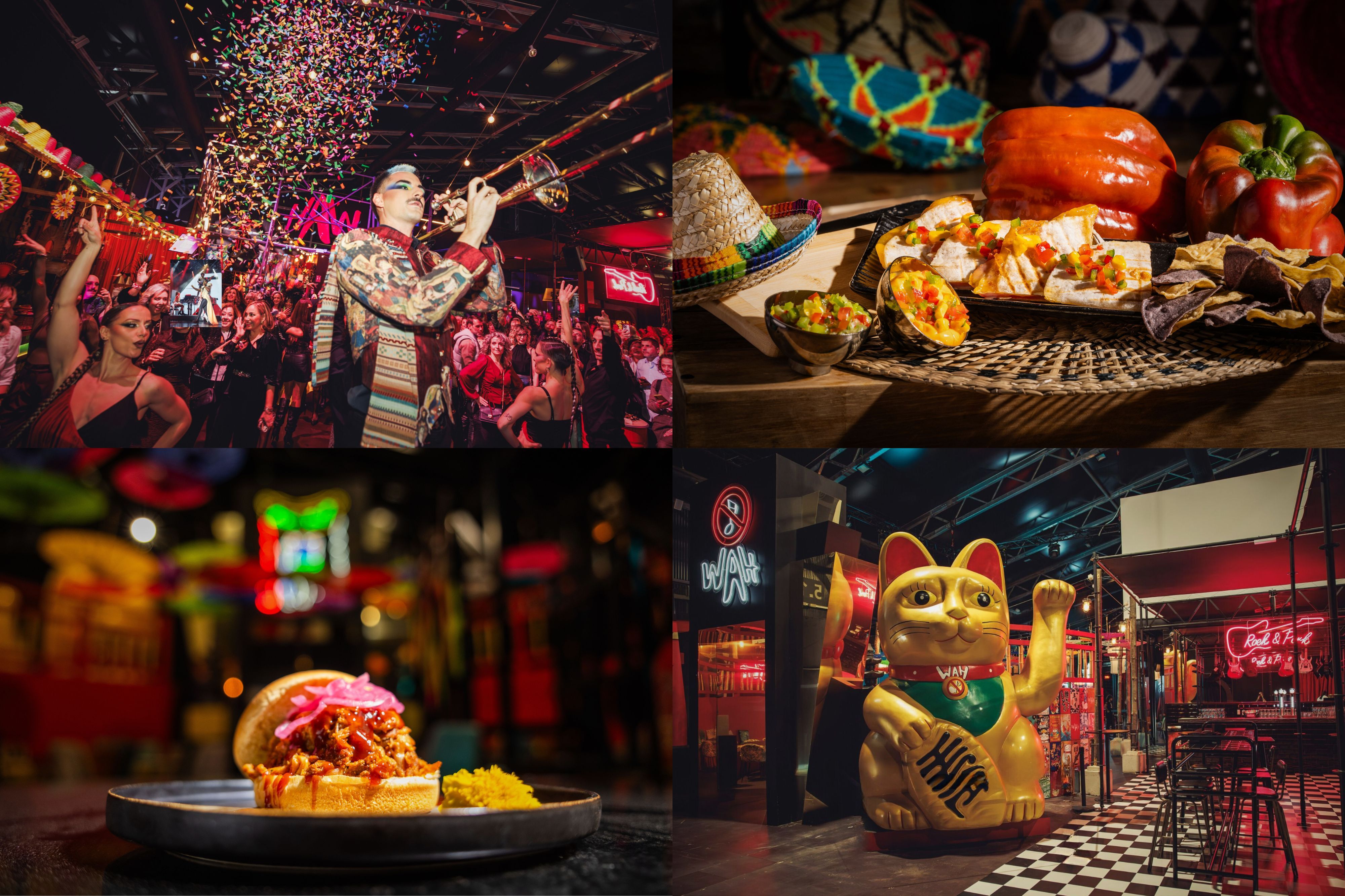 La experiencia se estructura en tres actos. El primero es el Food Hall, punto de encuentro para comenzar la celebración con gastronomía internacional, actuaciones en vivo y diferentes formatos para disfrutar, desde opciones street food hasta propuestas más exclusivas. El segundo acto tiene lugar en el Teatro WAH, el corazón del espectáculo, donde más de 40 artistas reinterpretan grandes himnos de la historia de la música fusionando rock, pop, ópera, flamenco y electrónica en un show de gran formato. La experiencia continúa con el aftershow en La Catedral, un espacio envolvente donde la música y la energía invitan a seguir celebrando.