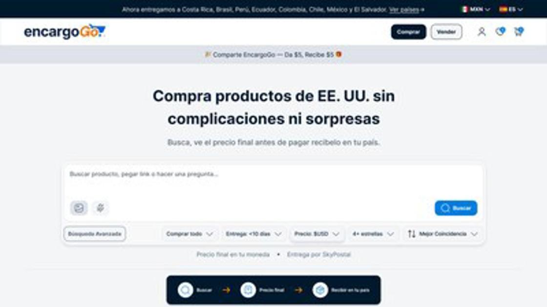 EncargoGo es una plataforma transfronteriza impulsada por IA que conecta a los compradores de LATAM con productos de EE. UU. con transparencia total en precios, pagos locales y entregas confiables—unificando descubrimiento, cálculo de costos e infraestructura logística. Más información en EncargoGo.com.