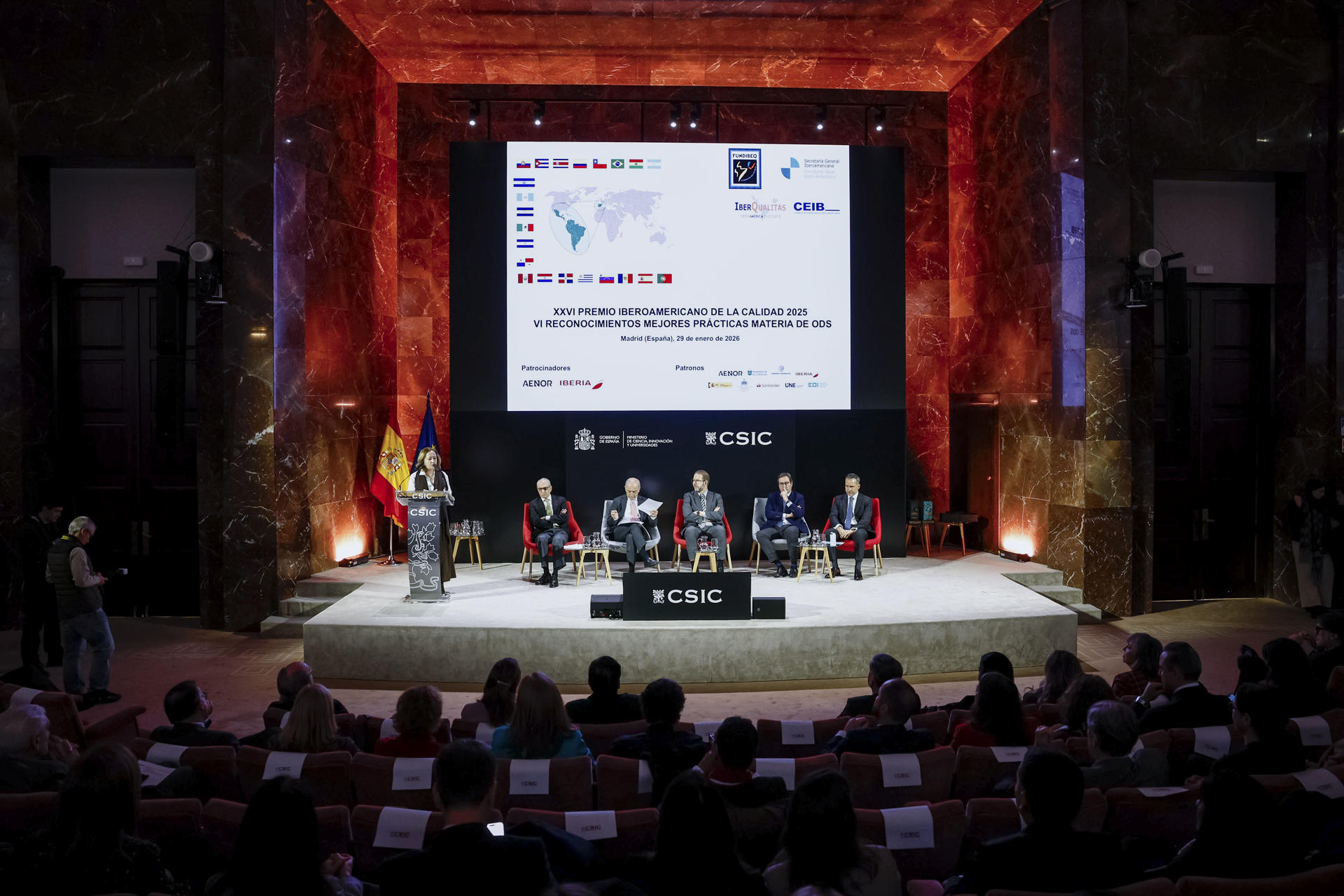 La SEGIB y FUNDIBEQ han entregado además los ‘Premios Iberoamericanos de la Calidad 2025’, que han distinguido con el Galardón Oro a NEOENERGÍA (Brasil); a la Cooperativa Vega Real y a DIGECOG (República Dominicana), y al Consorcio PST (Colombia).