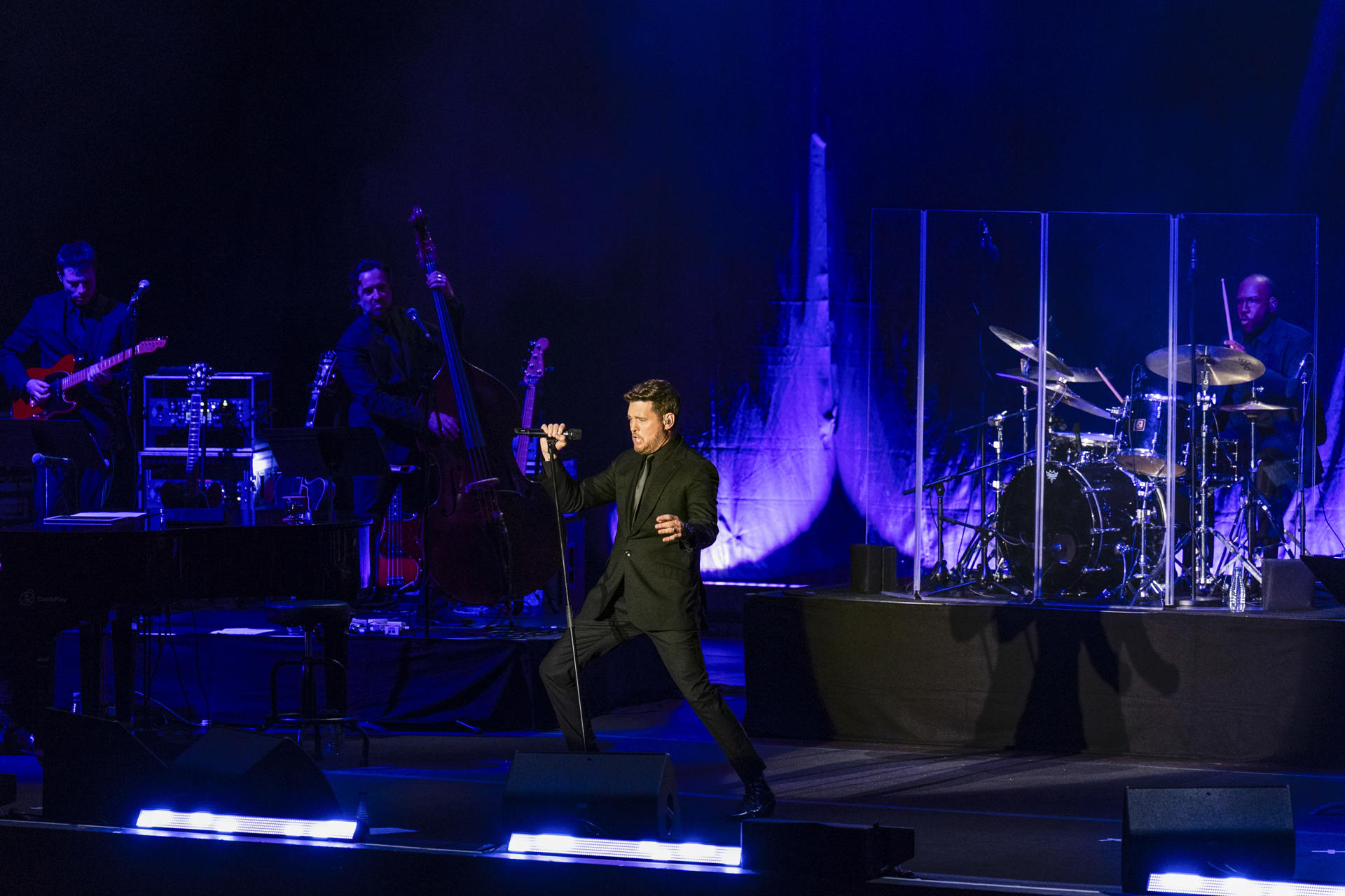 Bublé, vestido en traje chaqueta negro con camisa y corbata a juego, como la veintena de miembros de su banda, ha mostrado ante las más de 2.000 personas que llenaban la platea por qué ha vendido más de 75 millones de discos en todo el mundo y ha recibido numerosos premios a lo largo de su carrera.