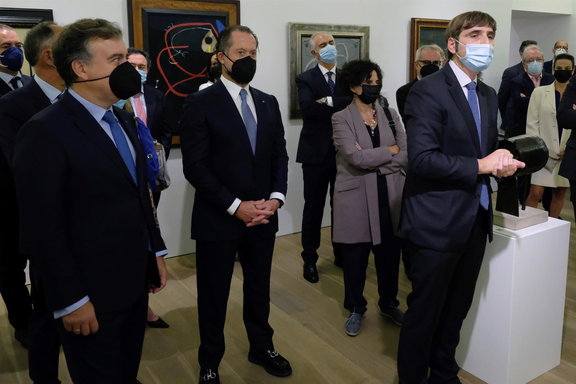 El presidente de Abanca ha realizado una visita institucional junto al presidente del Principado, Adrián Barbón, el alcalde de Oviedo, Alfredo Canteli, y el consejero delegado del banco, Francisco Botas, entre otras autoridades, por esta muestra seleccionada entre las más de 1.300 obras que integran la colección de la entidad gallega.