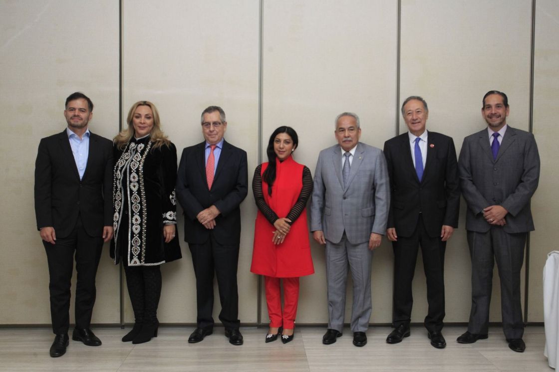 En el presídium estuvieron también Héctor Luna Muñoz, Vicepresidente Internacional de Fondeo de Bancomext; Jorge López Morton, Vicepresidente Internacional del COMCE; Carlos Urriola, Presidente de SSA Internacional; Eduardo Caballero, Socio de Norfolk; Jorge Alarcón Olivares, Asesor de Presidencia del Consejo Coordinador Empresarial; e Ingrid Orozco, experta en internacionalización de empresas a Medio Oriente y América Latina.