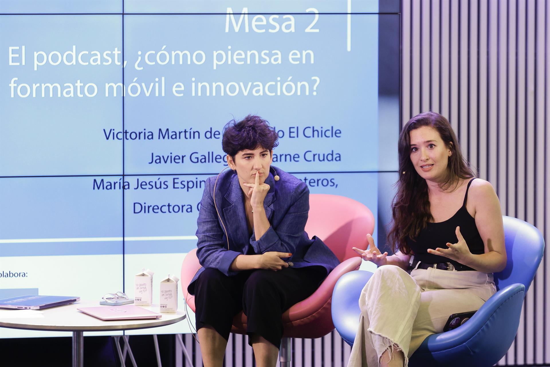 Igualmente, Victoria Martín, de Estirando El Chicle, y Javier Gallego, de Carne Cruda, han explicado de primera mano cómo consiguieron poner en marcha sus podcast sin apoyo de los medios tradicionales y sus sensaciones sobre la «democratización» que implica este tipo de contenido.
