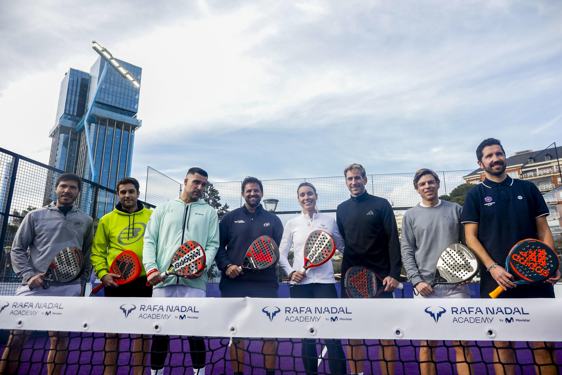Miembros del equipo de la Rafa Nadal Academy, encabezado por su jugador franquicia Álex Ruiz, y la directora de Marketing de la academia, Maribel Nadal, han presentado esta tarde en Madrid su candidatura para hacerse con el torneo de pádel Hexagon Cup, que reunirá a seis equipos en dos cuadros, en el pabellón Madrid Arena desde el próximo 31 enero.