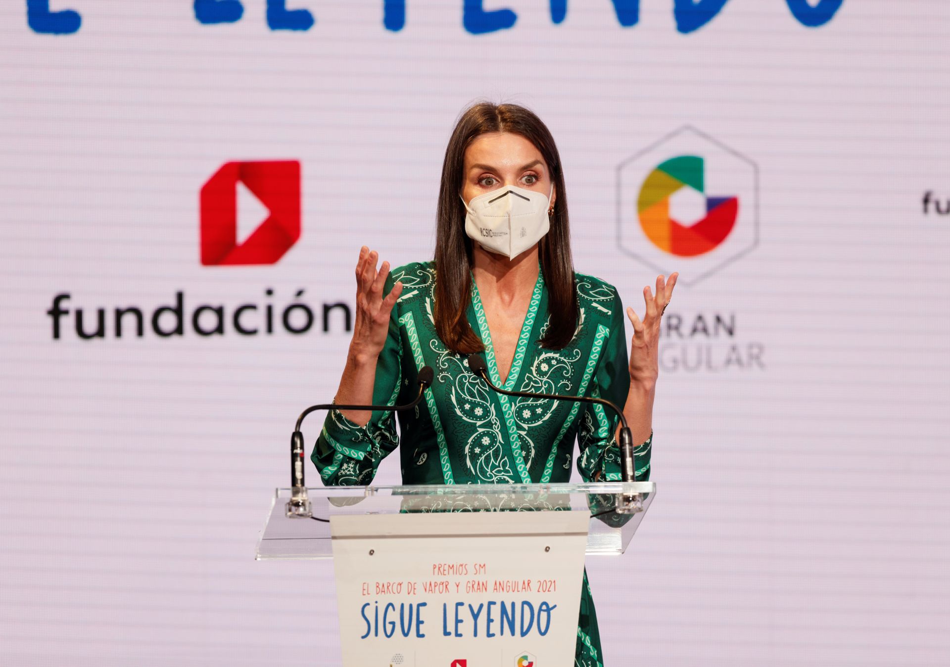 Doña Letizia ha presidido la ceremonia de entrega de la 43 edición de los premios SM de Literatura Infantil y Juvenil El Barco de Vapor y Gran Angular, que han recaído en las escritoras Beatriz Osés y Chiki Fabregat, respectivamente.