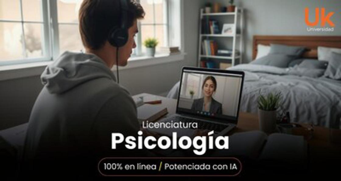 La Licenciatura en Psicología de la Uk se puede cursar en solo 2 años y 8 meses, completamente en línea, desde cualquier dispositivo. Los estudiantes cuentan con sesiones en vivo y grabadas, acompañamiento constante vía WhatsApp, colegiaturas congeladas, y un proceso de titulación automática sin tesis, accesible para quienes aprueben todas las materias y cuenten con un nivel básico de inglés (A2).